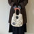 中央のドットがポケットになっいる他、長持ち手は底にボタン留めできるようになっていて、